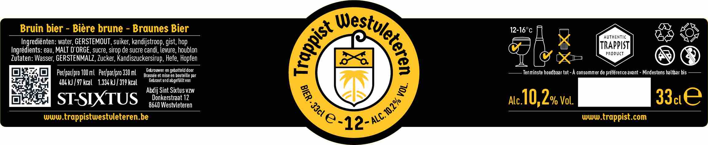 Sur les étiquettes, outre le nom de la bière et les indications, symboles et allergènes légalement requis, on trouve également la liste complète des ingrédients en trois langues, les valeurs énergétiques, le logo avec les armoiries de l'abbaye de Saint-Sixte et un code QR qui renvoie au site web avec le tableau complet des valeurs nutritionnelles.